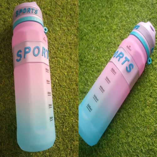 Bouteille d'eau portable et durable, étanche, avec boucle de transport et couvercle rabattable, bouteille de sport en plastique sans BPA, bouteille fine 1000Ml Rose Vert